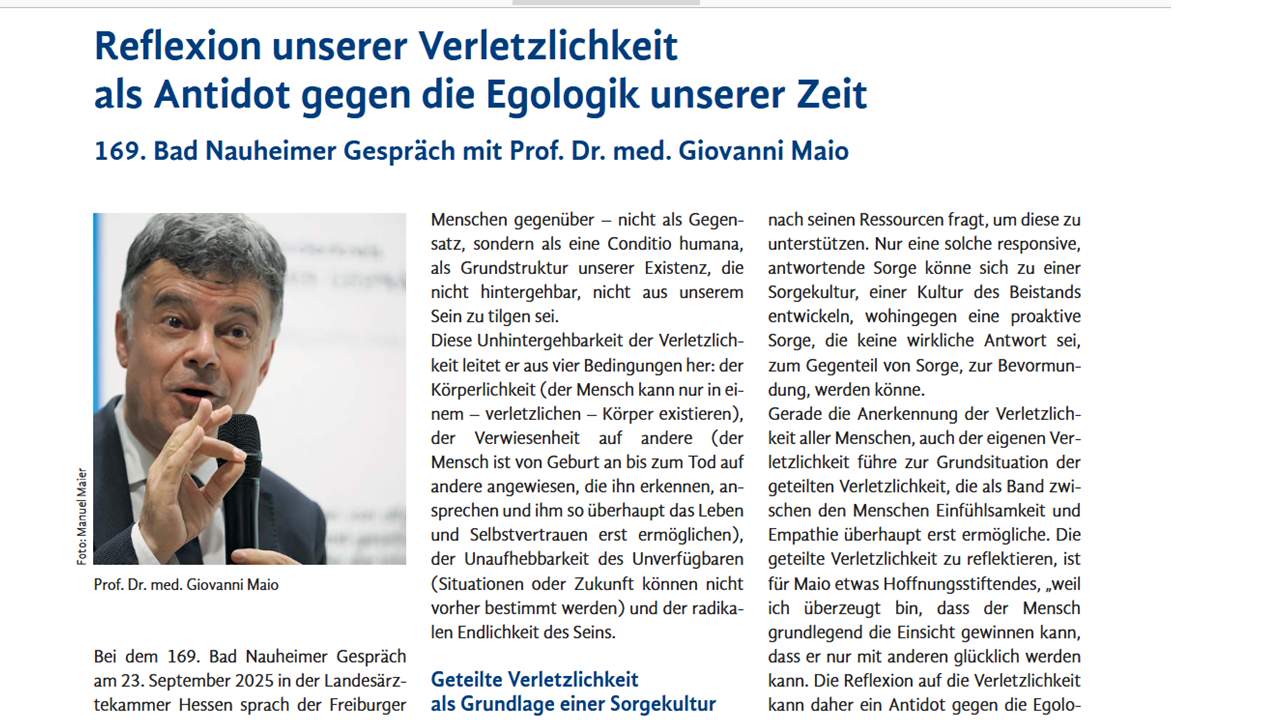 Was heißt dies nun für die Medizin? Den kranken Menschen als verletzlich anzusehen, bedeutet nicht einfach, ihn als „Objekt der eigenen Hilfeleistung“ zu betrachten, es bedeutet auch und im Besonderen, ihn als Subjekt wahrzunehmen, und mit ihm gemeinsam seine Potentiale für einen guten Umgang mit seiner Krankheit zu finden.